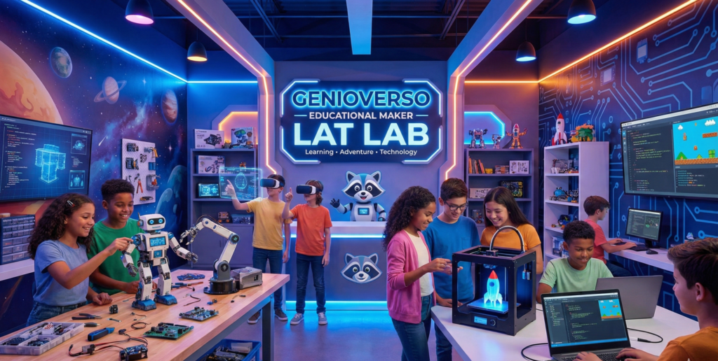 Esqueça as fileiras de carteiras e o silêncio absoluto. O LAT Lab é um espaço vivo onde aprender significa viver uma aventura tecnológica.